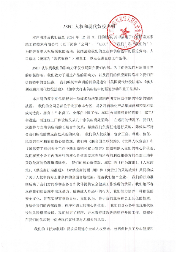 2024年发布北京阿塞克系统工程技术有限公司人权声明。